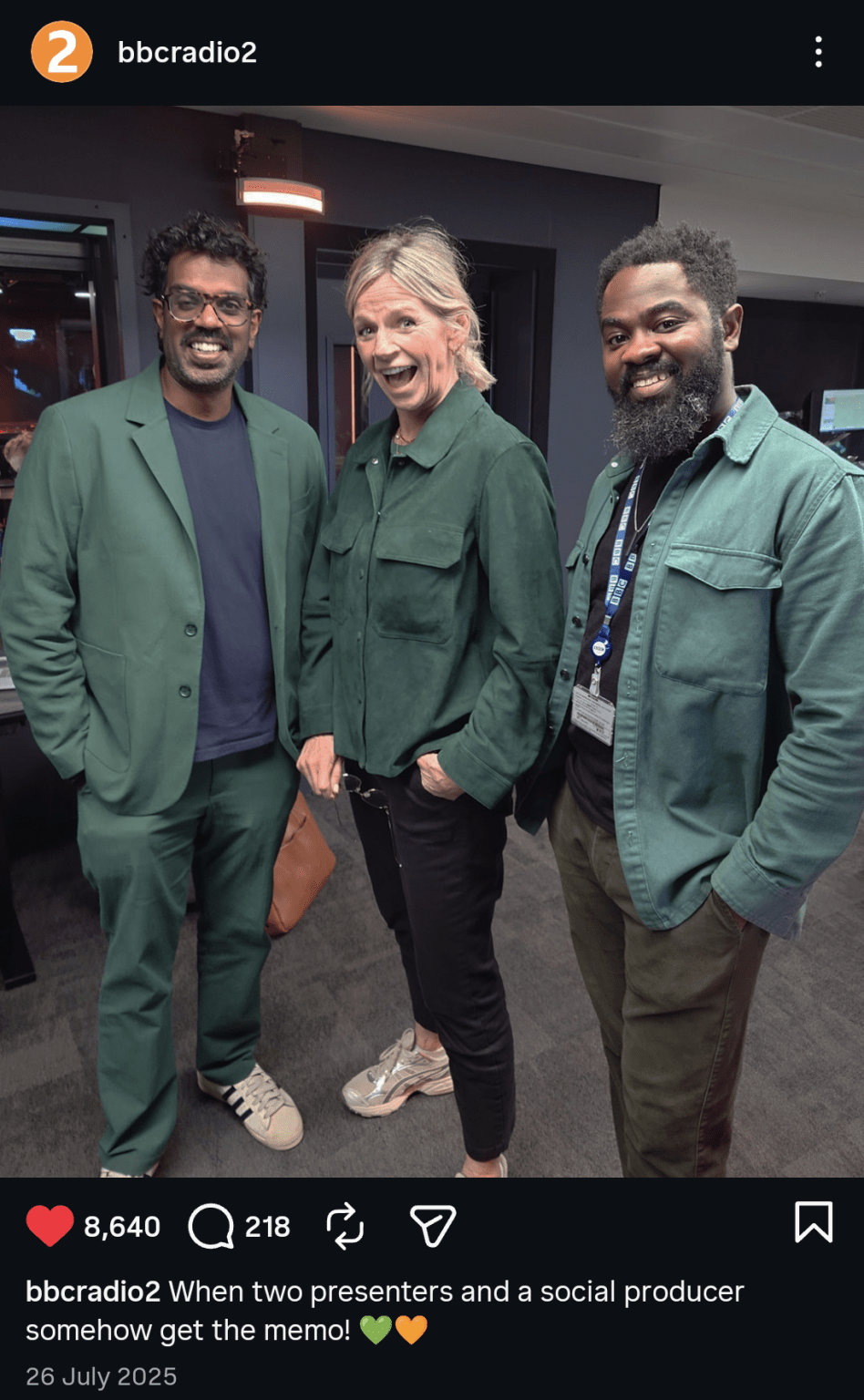 The role demanded the ability to shift creative gears constantly – from Dermot’s warm morning pace to Rylan’s get-ready-for-the-weekend energy – producing a mix of live reactive content and pre-produced pieces that felt native to social media while staying true to Radio 2’s vibrant flavour.